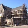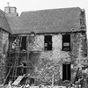 Prior to the 1950s restoration, the courtyard, or the current terrace, was roofed over and there was a solid staircase to serve the upper floors which was subsequently removed when the courtyard was reopened, and the roof removed. The photographic evidence from the 1920s shows that the stonework was once harled and there was a door in the West elevation, although, the stair up to it has gone by this point. In the 1950s, the harling was removed, the staircase door opening on the first floor was bricked up to create a window, the East chimney was demolished and the two doorways in the corner of the second floor were closed up. The ceiling level was lowered, and the main wing’s floor structure was removed and replaced along with the basement walls were rebuilt using brick. The original main entrance to Panmure was turned into a window and a new entrance was routed to the courtyard.
