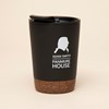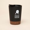 - Double wall coffee cup with plastic inside and unique cork detail.